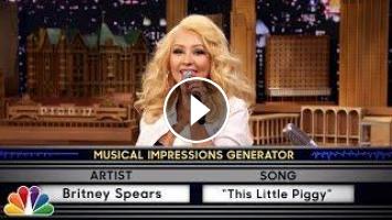 Jimmy challenges Christina to a game of random musical impressions, such as Britney Spears singing "This Little Piggy."