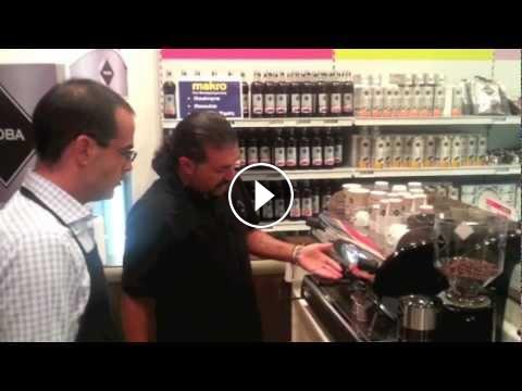 Ο Σταύρος Λαμπρινίδης, Παγκόσμιος Δευτεραθλητής 2012 SCAE και 4 φορές Πρωταθλητής Ελλάδας, εκπαιδεύει στέλεχος της MAKRO στη προετοιμασία του άψογου espresso.