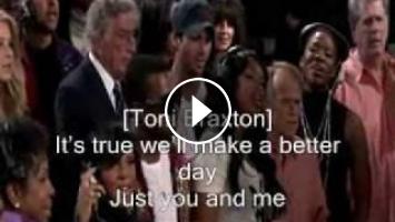 this is we are the world official music video with lyrics and singer names, after the earthquake of haiti varies singers and artists made a new version of the song that 20 years ago michael jackson and some singers of those days made for africa, the name of the song was we are the world