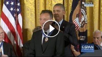 Bruce Springsteen receives the Presidential Medal of Freedom from President Obama.