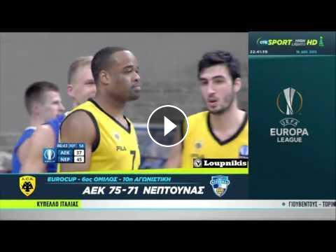 ΑΕΚ - Νεπτούνας 75-71 / ΑΕΚ Athens B.C Vs BC Neptūnas Full Game - Eurocup {16/12/2015}
