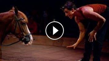 "I've been interested for some time in the methods of natural horsemanship — observing the animal's instincts, knowing the way he communicates and inventing a language half animal and half human. I've spent a lot of time finding a way we can 'speak' with each other, not when I am on his back, but when our bodies are side by side. Once I got to control 'the calling' — meaning when you call the horse and he comes — it began a sort of elastic game, a back and forth. Then the circus training makes a very fragile mixture with all this, because if you want to perform a concrete exercise you must practice and repeat it time and again until it is set — if we want Bonito to do a Spanish step, Bonito must strengthen his muscles and learn to concentrate, so we must rehearse every day. But over that there's the character of the horse, what he likes or not and in what mood he's in during the show... So we leave him his space. Bonito is actually a lazy horse, he really loves laying down on the ground with me."