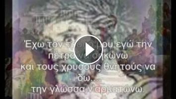Γλώσσα μου μυριολάλητη πώς να σε ασημώσω που `σαι διαμάντι αδάμαστο, πέτρα για να στεριώσω, έχω τον τρόπο μου εγώ την πέτρα να σηκώσω, και αργυρούς θνητούς να βρω, τη γλώσσα ν’ αρματώσω.