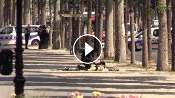 Dramatic moment a French police officer checks for a suicide bomb as he cuts the clothes off a driver who has just rammed a police van on the Champs-Élysées in Paris