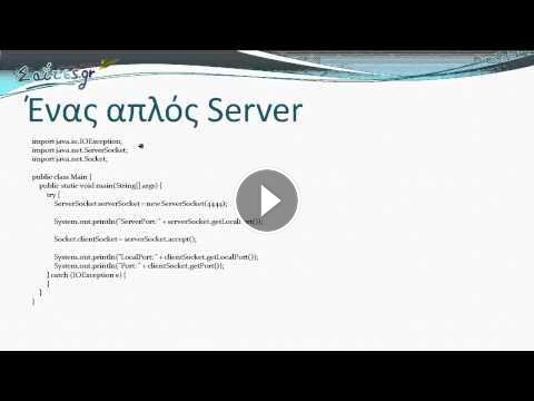 Από το http://saites.gr. Κατέβασε τον κώδικα: http://ht.ly/3nMIL. Εδώ θα δείτε με παραδείγματα πώς ακριβώς δουλεύουν τα sockets. Τo zip περιλαμβάνει την Java υλοποίηση του EchoServer που παρουσιάζεται στο video. Τρέχει με οποιονδήποτε Java compiler. Μετά το compile χρησιμοποιήστε από το command line την εντολή telnet localhost 4444 για να συνδεθείτε.