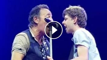 The teen was called up on stage to sing to a crowd of adoring fans after holding up a sign requesting to share a song with The Boss.