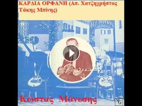 ΚΑΡΔΙΑ ΟΡΦΑΝΗ (Απ. Χατζηχρήστος Τάκης Μπίνης) (Ζεϊμπέκικο) (1952) στίχοι Κ. Μάνεσης