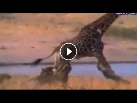 Jirafa Corre con 3 Leonas Colgadas de sus Patas - Excelente Video -
