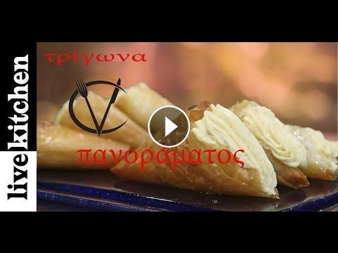 Υλικά για τρίγωνα πανοράματος: για την κρέμα 950 γρ.γαλα .100 γρ κρεμα γαλακτος. 250 γρ αλέυρι 3 βανίλιες .300 γρ ζάχαρη.65 γρ κρόκο. η 4 κρόκους 50 γρ βούτυρο 40 γρ ζάχαρη άχνη ................Για τα τρίγωνα θα χρειαστούμε 1 πακέτο φύλο κρούστας... 200 γρ βούτυρο ..Για το σιρόπι 500 γρ ζάχαρη 400 γρ νερό...........Εκτέλεση Πρώτα θα φτιάξουμε το σιρόπι θα βάλουμε το νερό με την ζάχαρη και θα το τοποθετήσουμε επάνω στο μάτι της κουζίνας με την πρώτη φουσκάλα σβήνουμε το μάτι ί και το αφηνουμε να κρυώσει ..Μετά ρίχνουμε σε μια κατσαρόλα τα 600 μλ γάλα και το βάζουμε να ζεσταθεί μαζί με την 300 γρ ζάχαρη[προσοχή να μην αρπάξει] και την ώρα που θα περιμένουμε να ζεσταθεί θα ρίξουμε στο υπόλοιπο γάλα τους κρόκους, και 250 γρ αλεύρι. Έπειτα θα βγάλουμε από το μάτι της κουζίνας το γάλα με την ζάχαρη και θα πάρουμε μια κουτάλα και θα ρίχνουμε σιγά σιγά το ζεστό μείγμα στο γάλα με τους κρόκους και το αλέυρι [προσοχή να μην μας σβολιάσει]εφόσον ανακατέψουμε καλά ξαναβάζουμε την κατσαρόλα στο μάτι και ανακατεύουμε μέχρι να σφίξει και μετά το βάζουμε στο ψυγείο. Εφόσον κρυώσει το βγάζουμε απο το ψυγείο και το ανακατεύουμε με την σαντιγί που ετοιμάσαμε με την κρέμα γάλακτος και την άχνη. Ξεκινάμε τα τρίγωνα ,θα κόψουμε την ζυμη σε 3 ισα μερη.Επειτα παιρνουμε ενα ενα φυλλο τα πασπαλιζουμε με ελαχιστο βουτυρο και ξεκιναμε την διαδικασια διπλωματος του φυλλου.Υστερα το κοβουμε στη μεση και τοποθετουμε μεσα στη ζυμη αλουμινοχαρτο η λαδοκολα ωστε να παραμεινουν ανοιχτα κατα την διαρκεια του ψησιματος.Τα ψηνουμε για μιση ωρα στον αερα στους 160 βαθμους.Μολις ειναι ετοιμα τα βαζουμε απευθειας μεσα στο σιροπι για 10 δευτερολεπτα.Επειτα γεμιζουμε με το κορνε προσεκτικα ολα τα τριγωνα μας.Τελος τα τοποθετουμε για λιγη ωρα μεσα στο ψυγειο.ΕΥΧΑΡΙΣΤΟΥΜΕ ΠΟΥ ΜΑΣ ΠΑΡΑΚΟΛΟΥΘΗΣΑΤΕ ΚΑΝΤΕ SUBSCRIBE ΣΤΟ ΚΑΝΑΛΙ ΜΑΣ.......